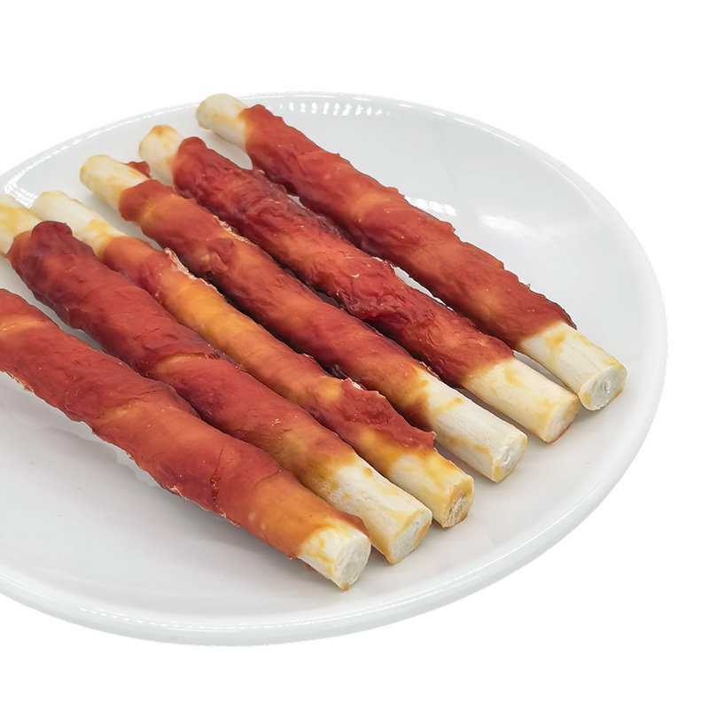 Home / Products / Composite Rawhide Series / NP004 5" Duck meat -Wrapped Composite Rawhide Dog chew Stick