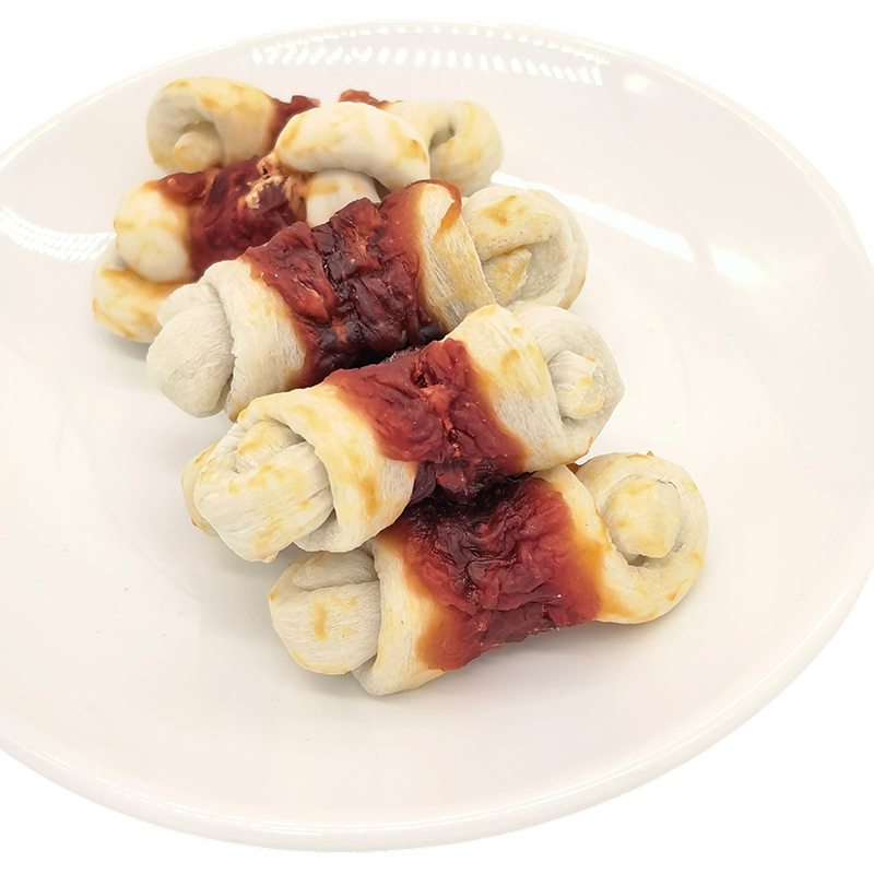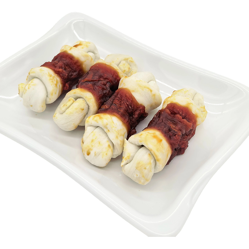 Home / Products / Composite Rawhide Series / NP008 3.5" Knotted Bone Duck meat-Wrapped Composite Rawhide Dog Chew Treats