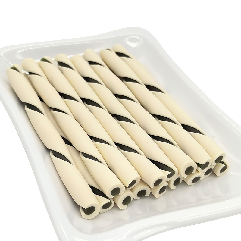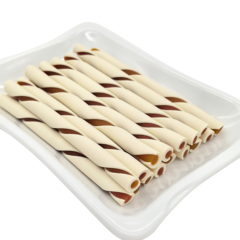 Home / Products / Dental Chew Sticks / Multi-flavored, two-tone twisted dog treats/chew sticks for stress relief and teeth cleaning.