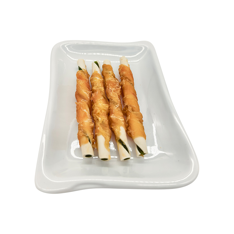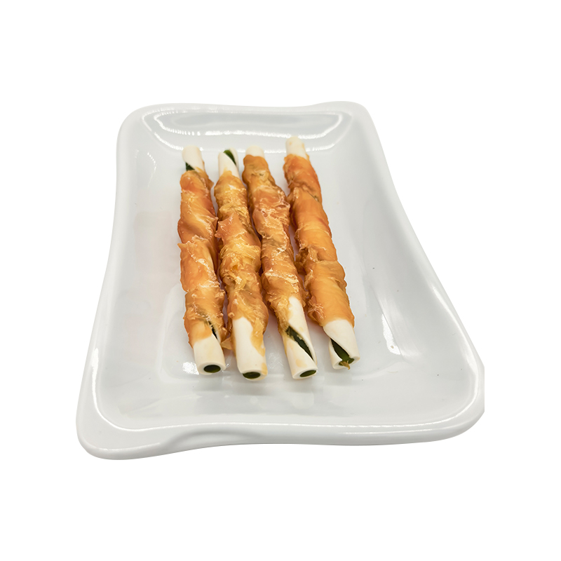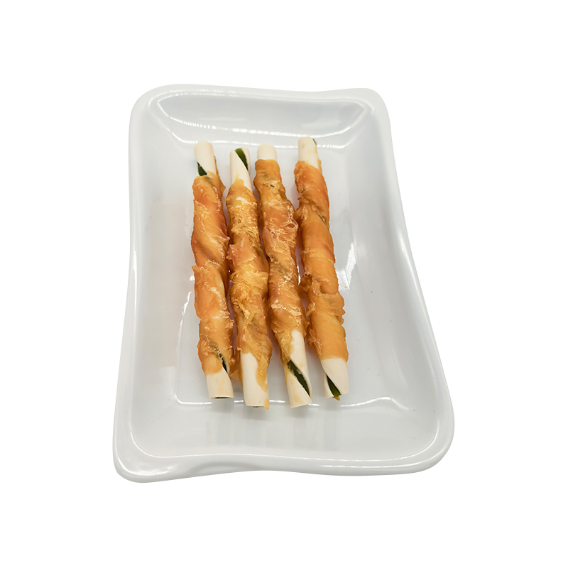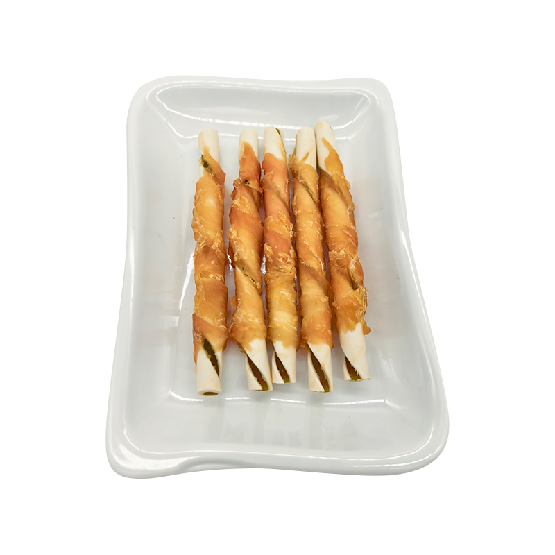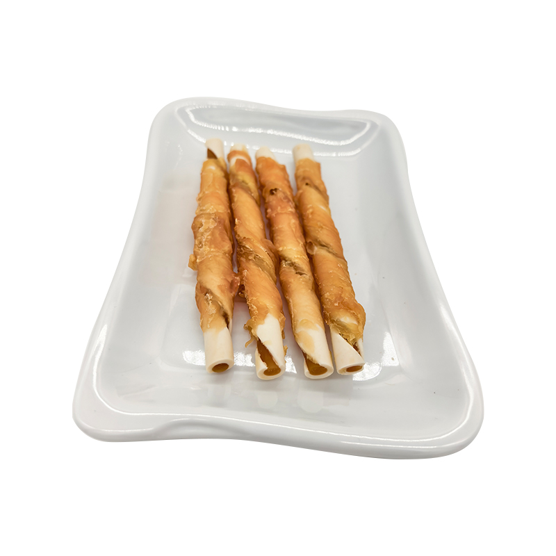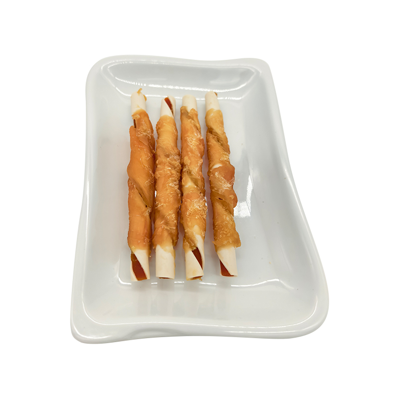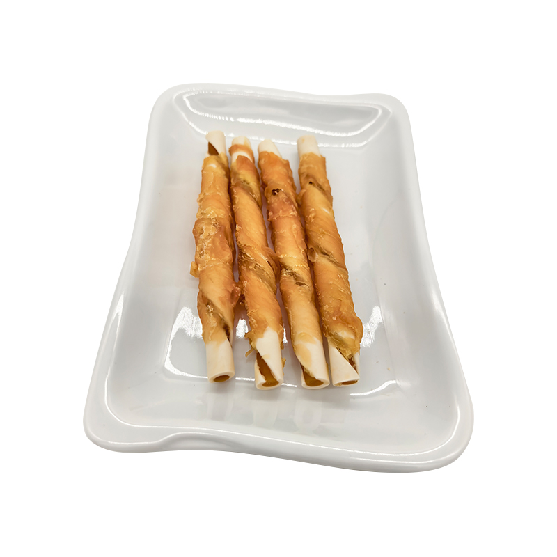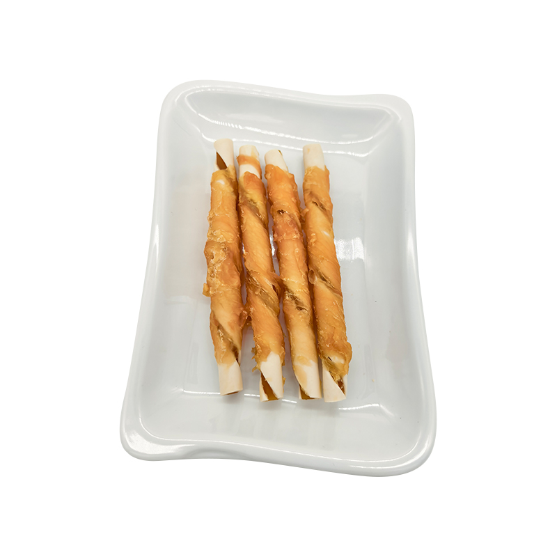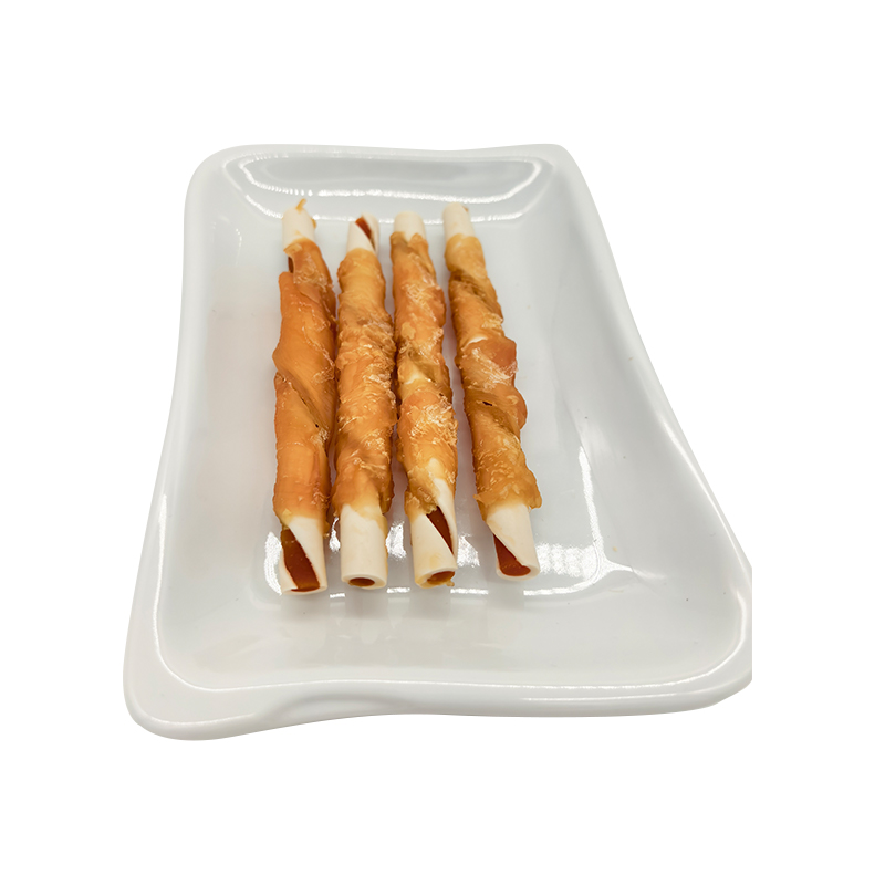 Home / Products / Meat Wrapped Dog Treats / Dual-Color Starch Wrapped Chicken Rolls – Long Lasting Dog Chew treats