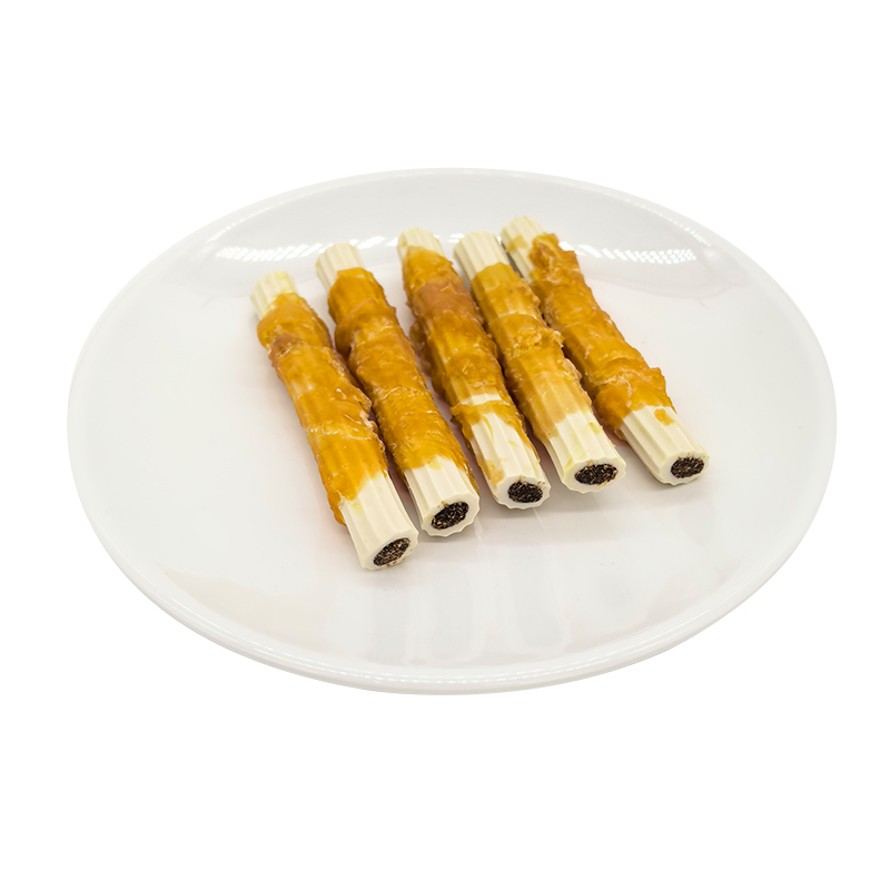 Home / Products / Meat Wrapped Dog Treats / ST005 Milk Flavored 6cm Meat-Wrapped Chicken Roll Filled Dog Snacks