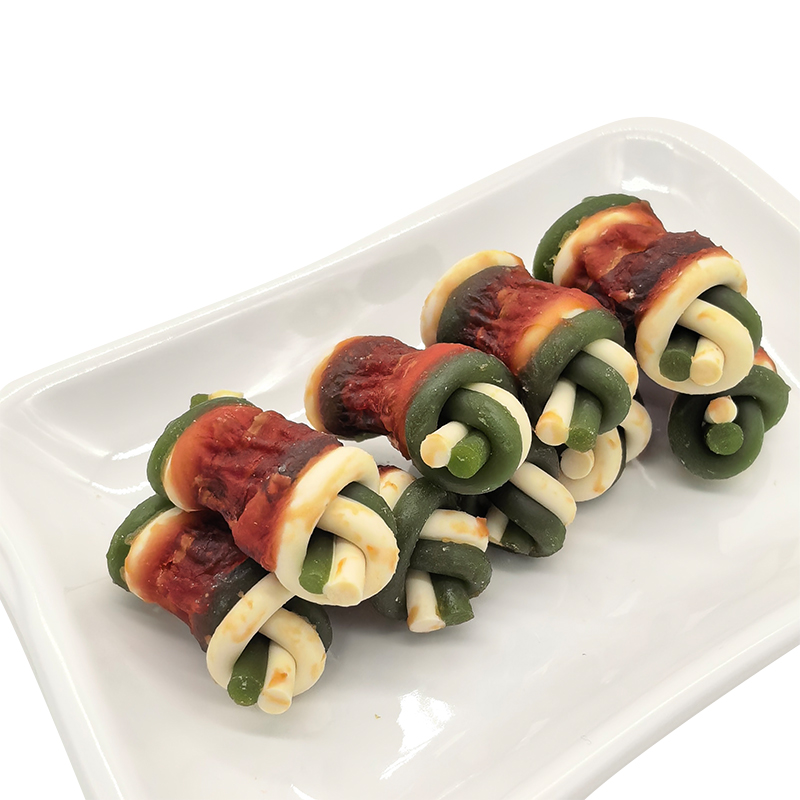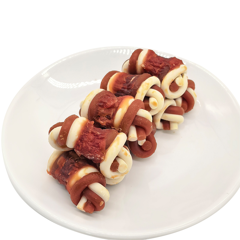 These dual-flavored, double-stick pet chew treats are designed for dogs who love to chew and need nutritional supplements. Made with high-quality starch, these treats feature a fun double-bone shape and are wrapped in premium duck meat.  Measuring 2.5-3 inches, they are perfect for daily training or as a reward. They not only help relieve stress and promote dental hygiene but also provide a delicious and long-lasting chewing experience. Available in a variety of flavors including peanut, chicken, mint, beef, and milk, they cater to different taste preferences, keeping your pet excited and happy.