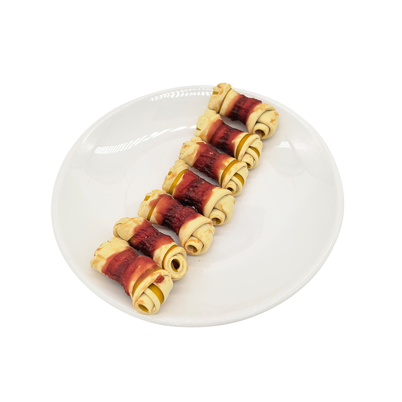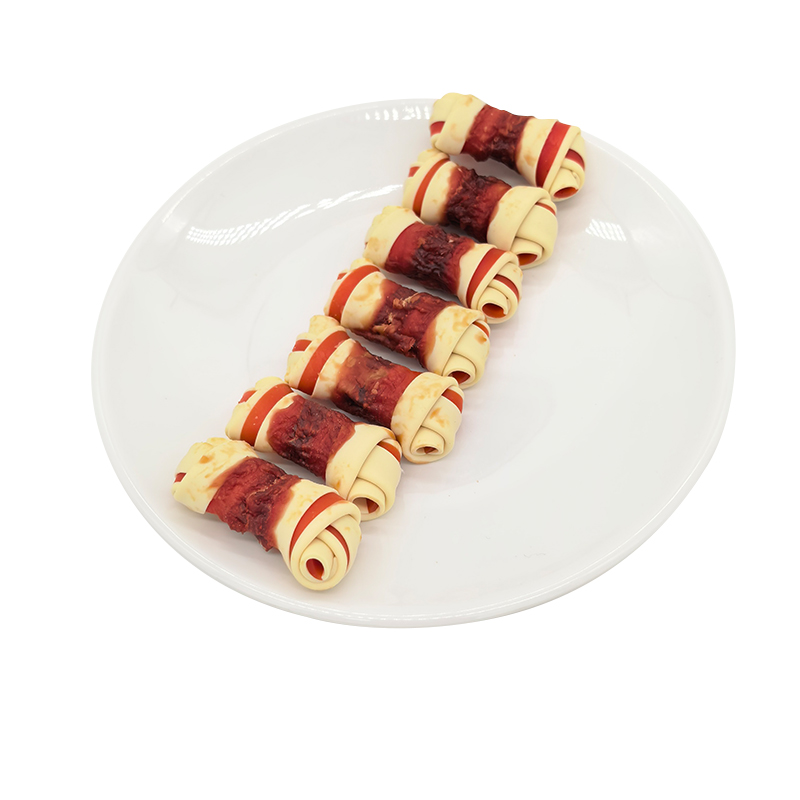 Home / Products / Meat Wrapped Dog Treats / Two-Tone Duck Wrapped Knotted Bone Dog Treats, Dental treats for Plaque & Tartar Removal 2.5-3 inches.